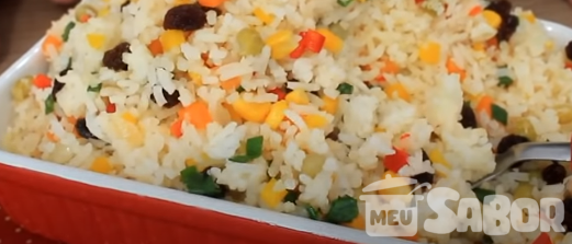 Ingredientes 3 xícaras de arroz 6 xícaras de água 1 caixa de uvas-passas queijo parmesão ralado 5 colheres de ervilha