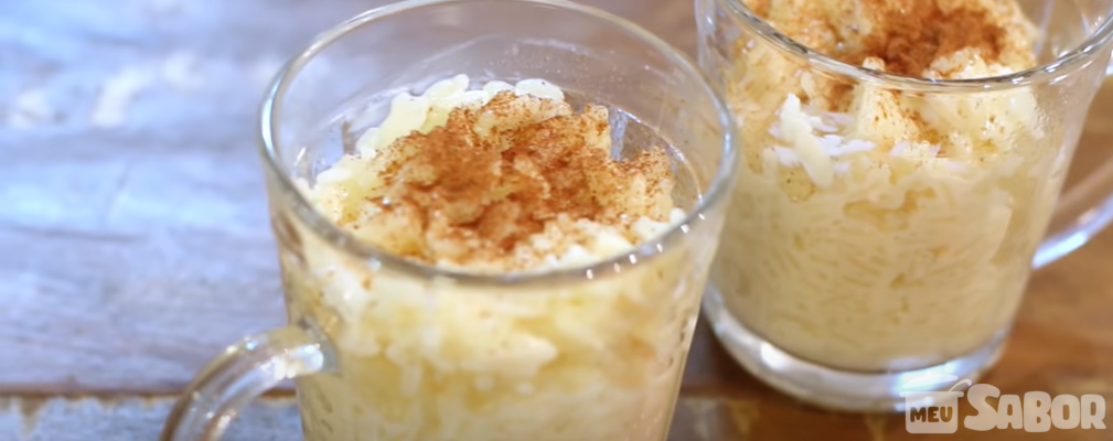 Ingredientes 1 xícara de arroz branco (cozido) 1 l de leite 1 caixa de leite condensado 1 gema Açúcar Canela